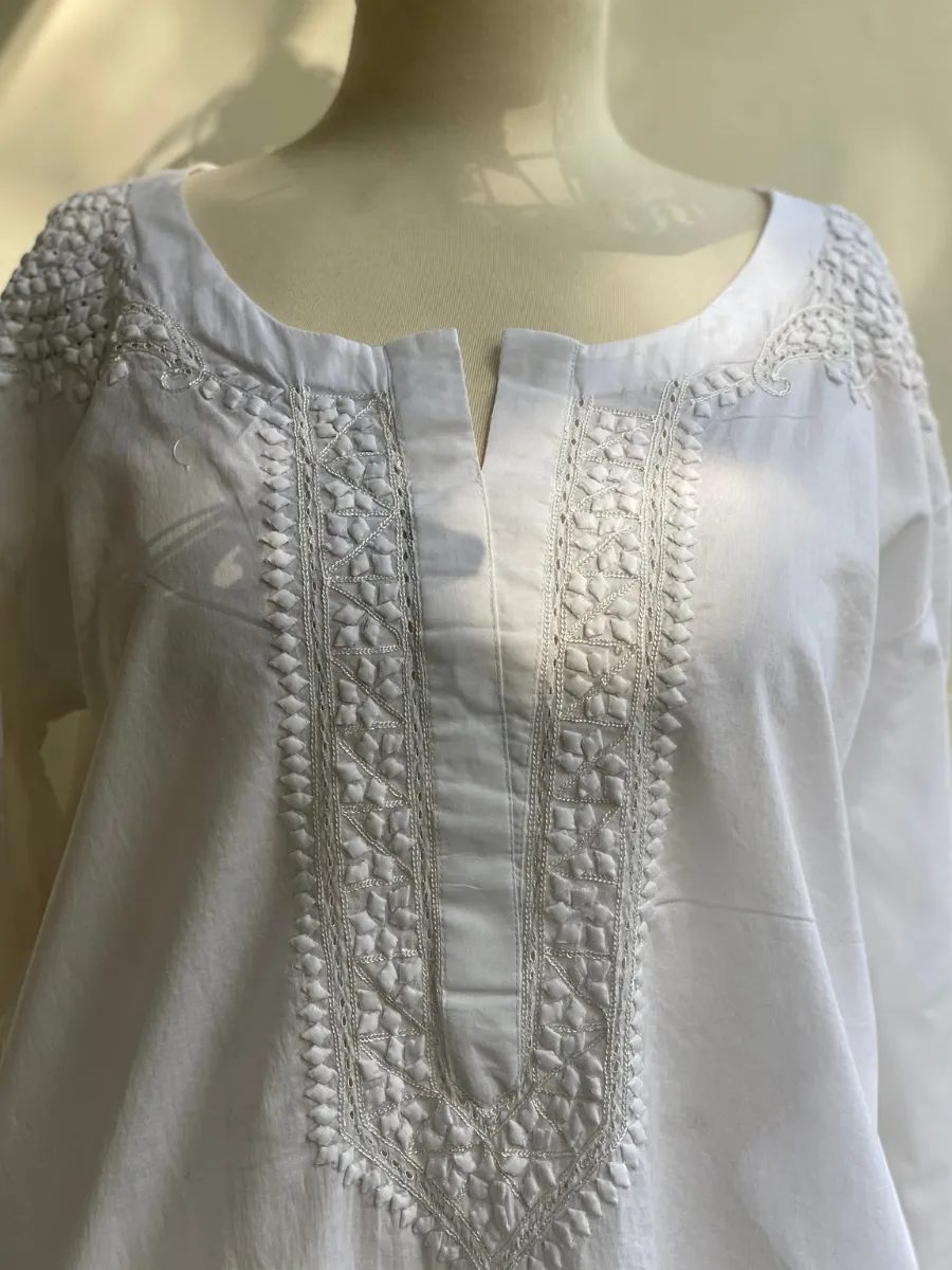Elevate your wardrobe with this timeless hand embroidered tukri work kurta crafted meticulously on pure lawn cotton. The intricate tukri embroidery showcases the beauty of traditional craftsmanship. Soft, breathable, and light weight lawn cotton fabric ensures all day comfort