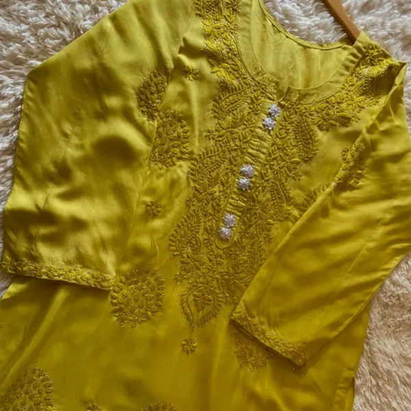 This Handcrafted Burgundy Tarkashi Shirt with Plain Trouser is a stunning example of how traditional handwork can meet modern fashion. The shirt features a beautiful tarkashi on neck line, sleeves and panels. Within this intricate design, skilled artisans have crafted floral motifs that add a soft, modern touch to the overall look. The burgundy color of the shirt brings a vibrant energy to the design, while the plain trouser keeps the look balanced.
