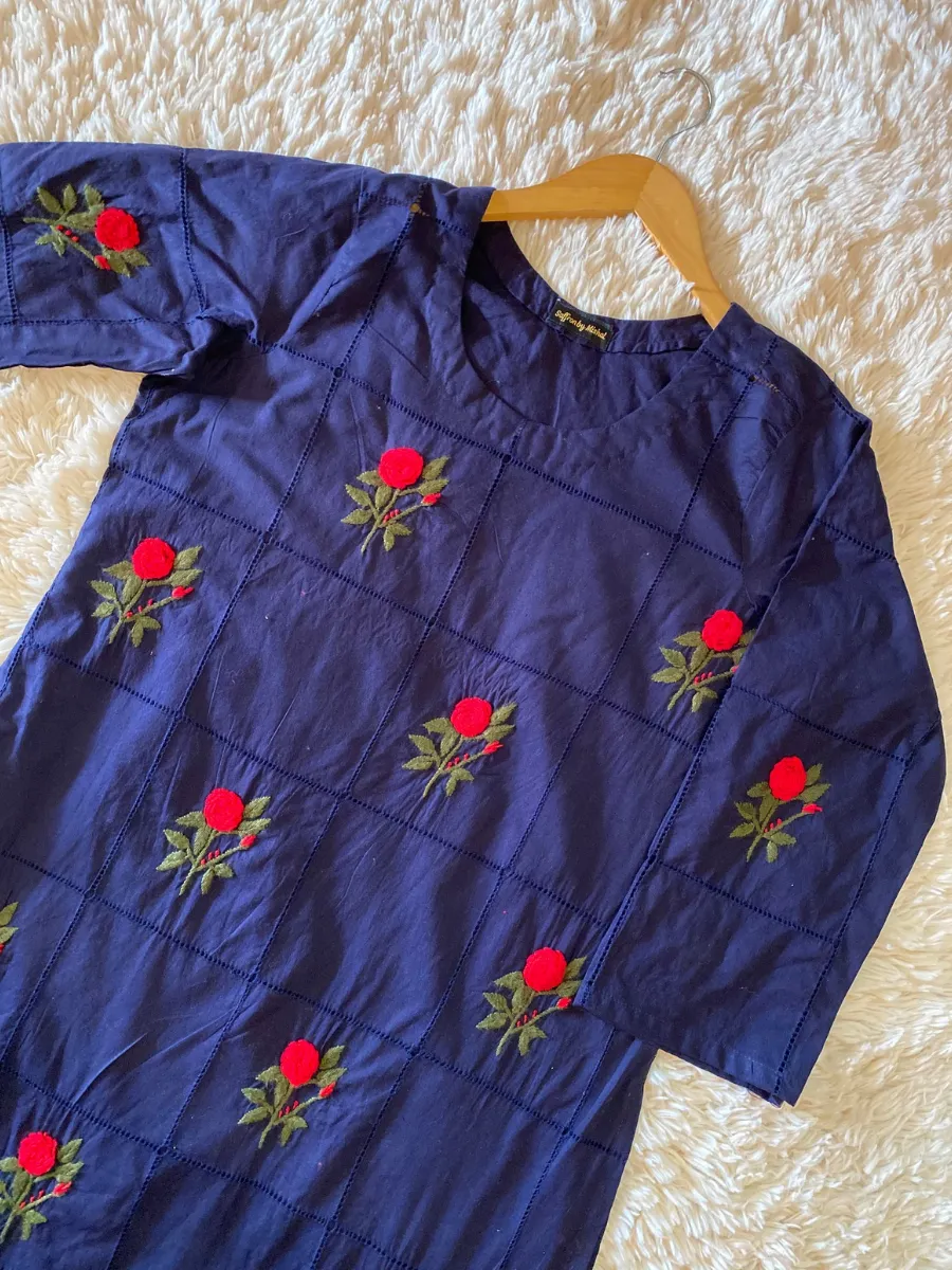 This Handcrafted Navy Blue Tarkashi Shirt with Plain Trouser is a stunning example of how traditional handwork can meet modern fashion. The shirt features a beautiful geometrical patterns of tarkashi. Within this intricate design, skilled artisans have crafted floral motifs that add a soft, modern touch to the overall look. The navy blue color of the shirt brings a vibrant energy to the design, while the plain trouser keeps the look balanced.